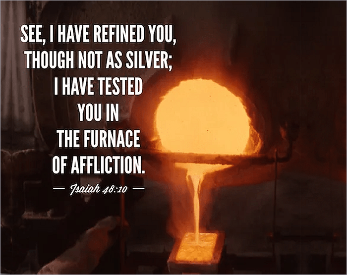 When our faith is “tested by fire,” the dross in us – anger, fear, doubt, pride, whatever the Lord is wanting to cleanse us from – rises to the top and is skimmed off so that what remains is pure. Therefore do not resist the process. Instead, let your prayer be, “Lord, grant me grace and strength to surrender to you and to cooperate with you in what you desire to accomplish in me.”