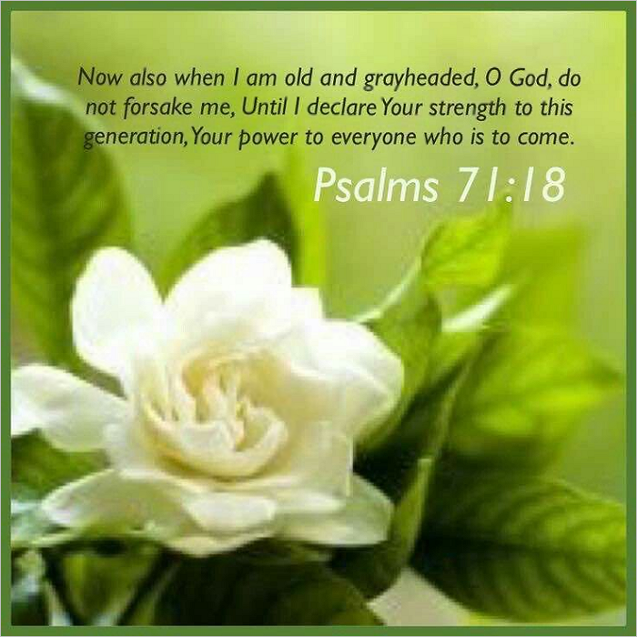 Most people look forward to their retirement years when they can be freed from daily labor. But not so those who are called by the Lord, for their ministry lasts as long as they live. The psalmist here prays that the Lord sustain him even as age advances and strength wanes. The same fire that dwelt within continues to blaze in him even while his physical body feels the effects of advancing age, because the body ages but the soul does not.