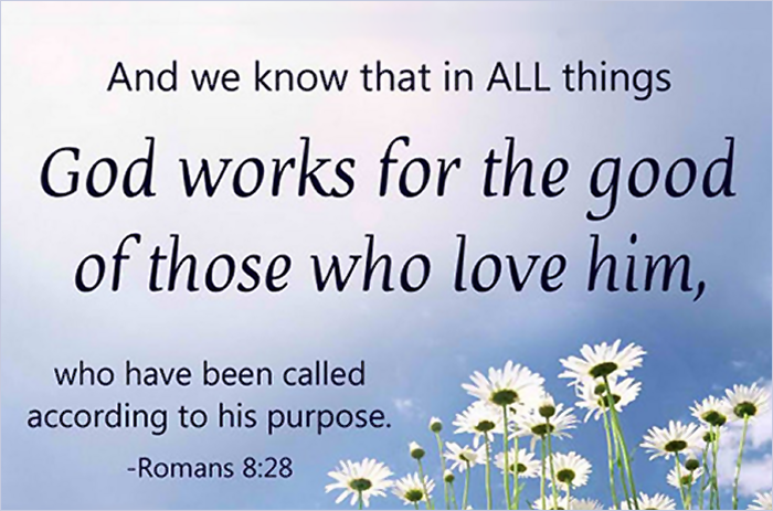 If you’re a believer going through something that you can’t possibly imagine could be worked together for good, just wait. You’ll eventually see, and marvel. Trust the Lord. His plan for your life is perfect, if only you’ll cooperate with him. Trust him. He is worthy of your trust.
