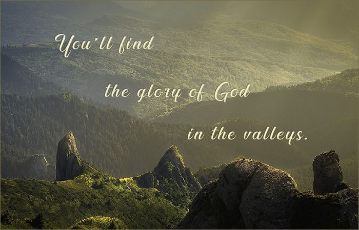 God allows the hard times in life to mature us. Unfortunately, when all is well we relax and the Lord is not foremost in our sight. It takes the pain of the dark times to bring us to attention and to draw us to realize the importance of getting our priorities right; then we exchange what we thought were the glorious mountain tops for the realities of the glorious valleys which bring us to the maturity the Lord desires to see in us. And we will bring him heartfelt thanksgiving when we see what he has accomplished in us.